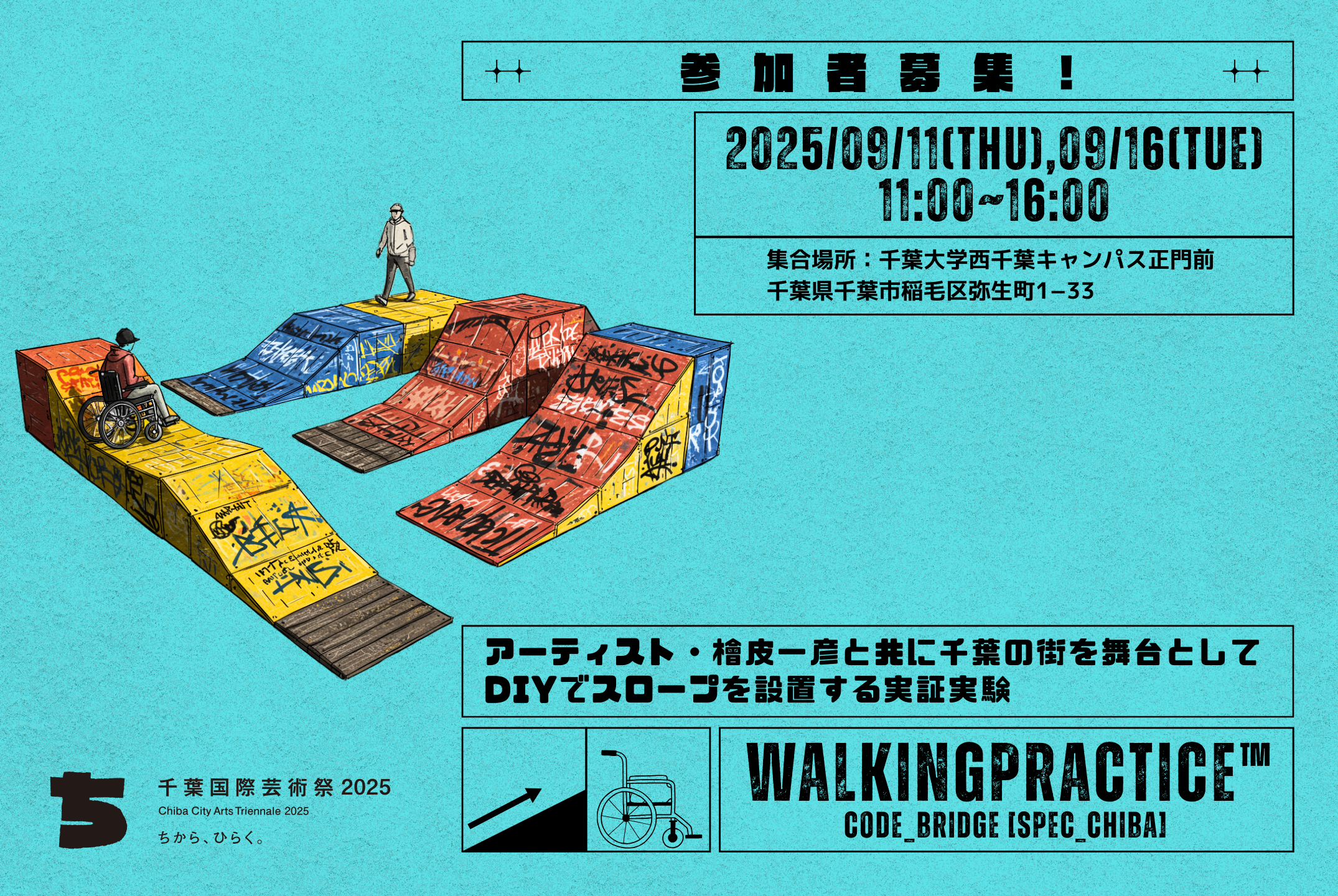 “walkingpractice™” is an art project developed nationwide by artist Kazuhiko Hinoki, who is himself a wheelchair user. For this festival, it will be implemented in Chiba City as “walkingpractice™ code_bridge [spec_chiba]”. Together with participants, we will explore and demonstrate “accessibility (the potential for everyone to use it easily)”.