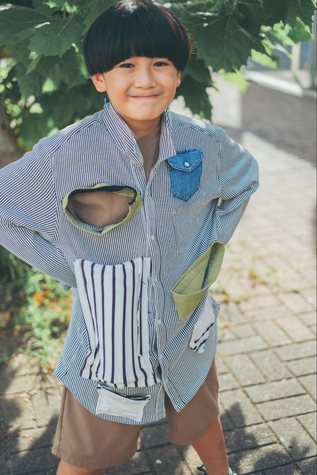 一見普通の上着に見えても、実はたくさんのポケットが隠されており、災害時や非常時に必要なものを全て収納できたり、新聞紙などをしまうことで防寒の機能も持たせることができるサバイバル服。