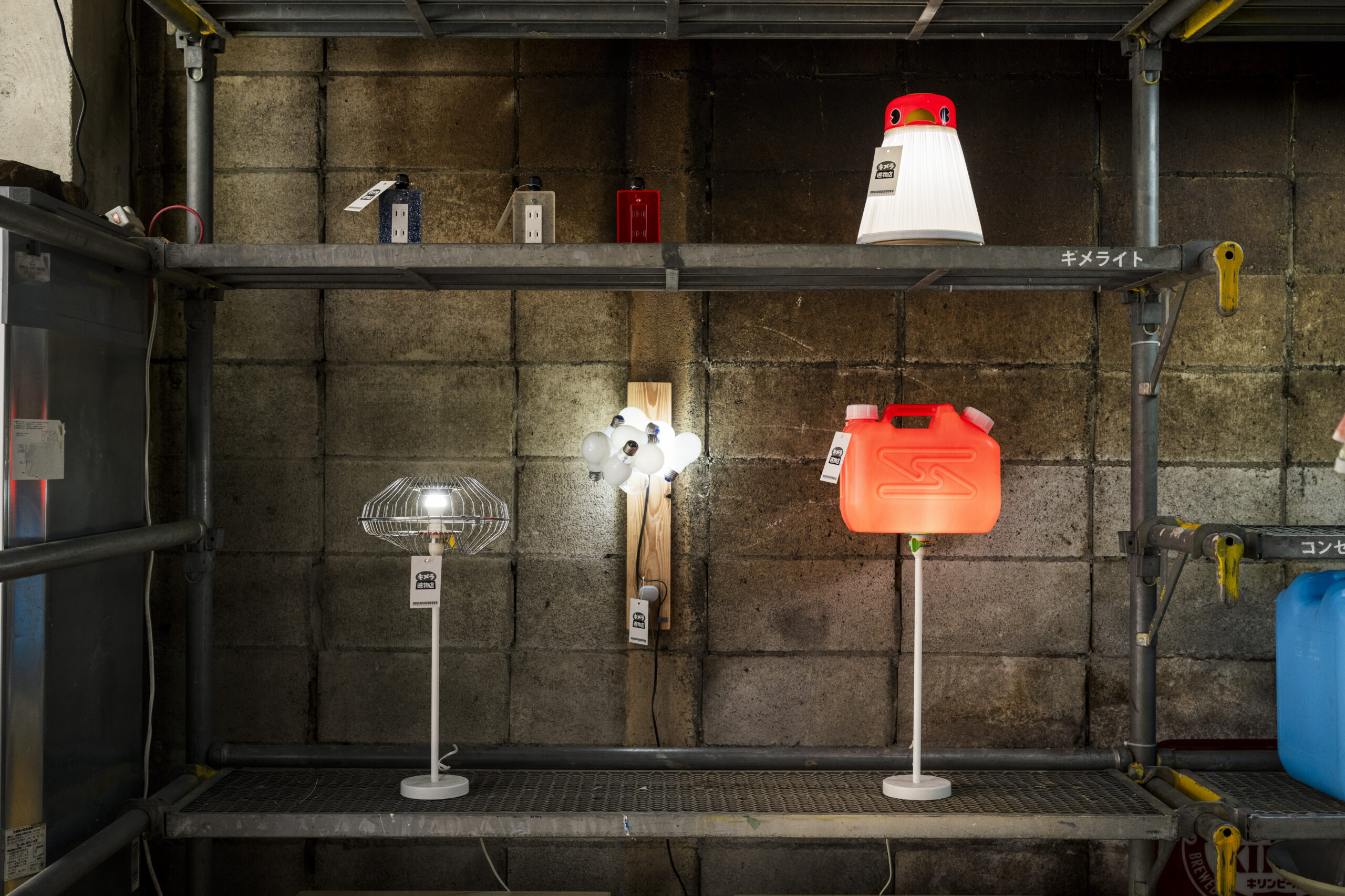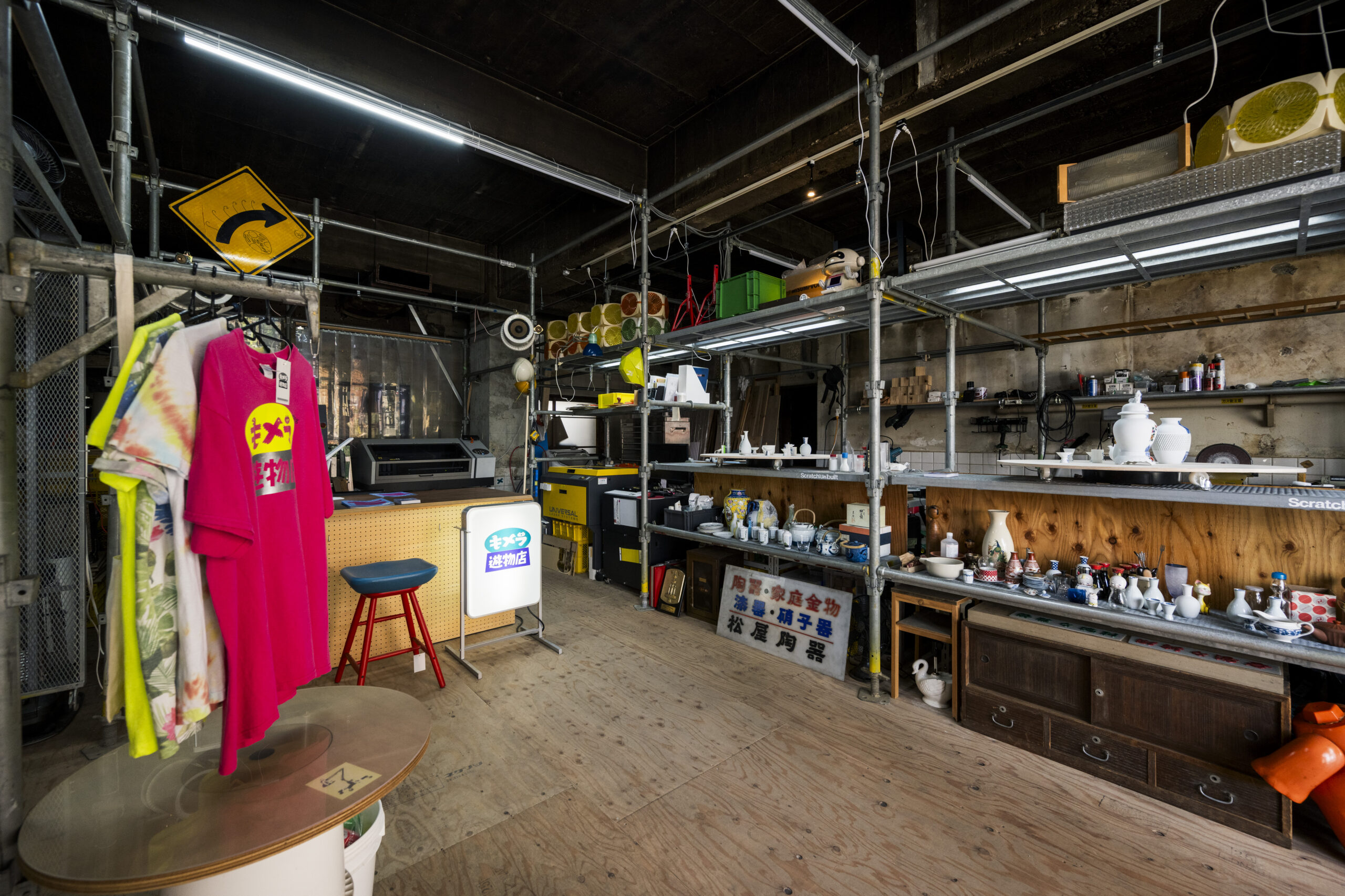 元厨房の1階は、岩沢兄弟がユニークなものづくりを展開する「キメラ遊物店」として運営。まちから集めた材料置き場・工房・店舗を兼ね、さまざまなモノとモノ、アイデアを組み合わせた「キメラ遊物」が岩沢兄弟とその仲間達によって日々生み出されていく。来場者はものづくりの様子を覗きつつ、ときどき開催されるワークショップに参加したり、材料やキメラ遊物を手にとれる。キメラ遊物店の中に謎店舗「“なんでも公式グッズ”セルフ」が立ち上がり、「芸術祭オフィシャル非公式グッズ」や「ちば公式土産(案)」を制作する予定。