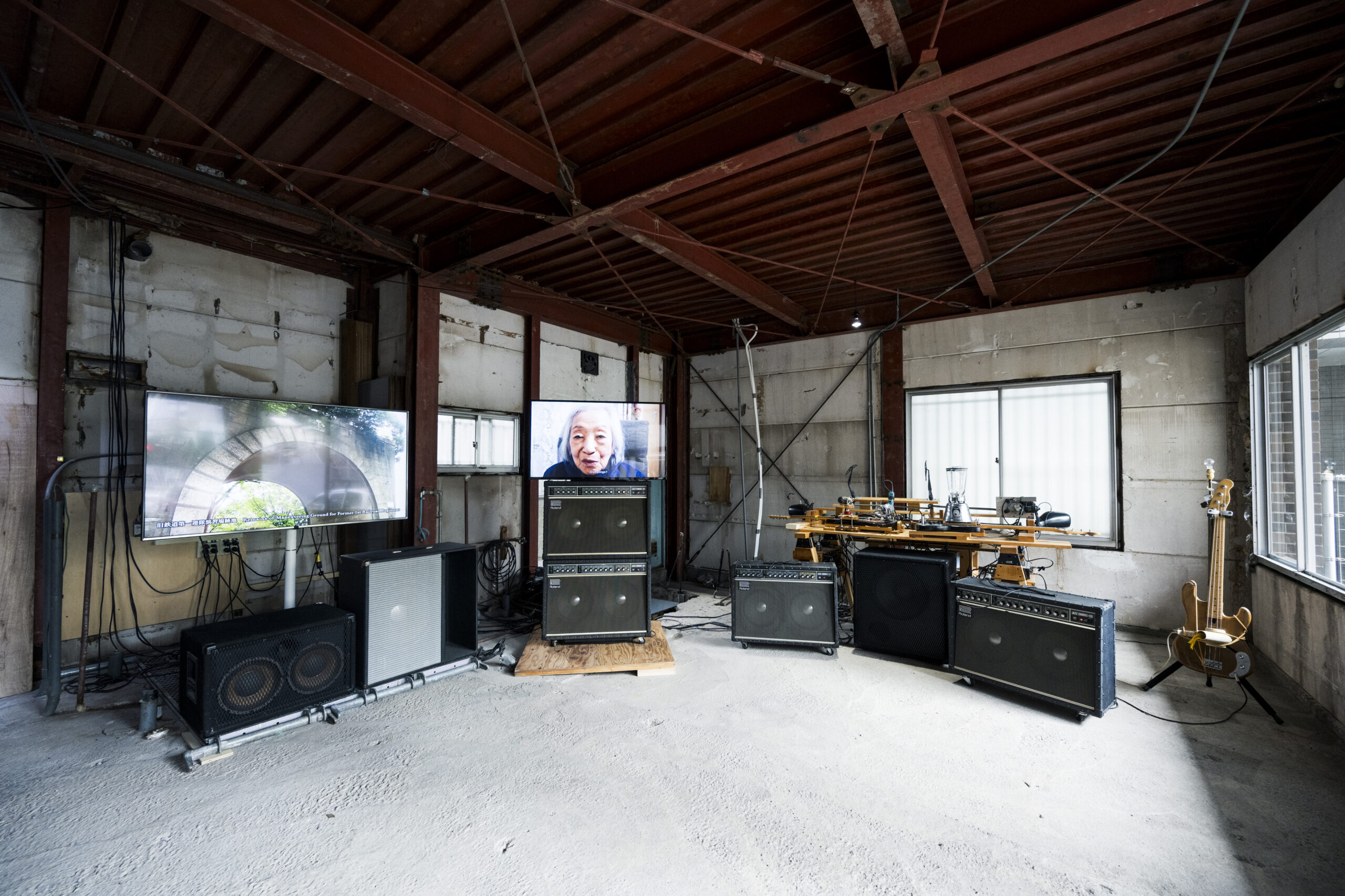 千葉市の近代化の基礎は、20世紀初頭に「軍都千葉」と呼ばれた、大日本帝国陸軍所属の鉄道連隊を中心とした大規模な軍備施設にあった。軍都として近代の幕があき、20世紀後半に完成した現代的な都市文化を持つ首都圏の都市。展示会場はその中心部に位置する二階建ての空き家。この風化した、鉄骨とモルタルで出来た和式の引き戸の建造物一棟全体でつくられる、20世紀の痛みと享楽が、戦争と平和が、つながる過去と現在が、豊かな空間として多面的に立ち上がる。
