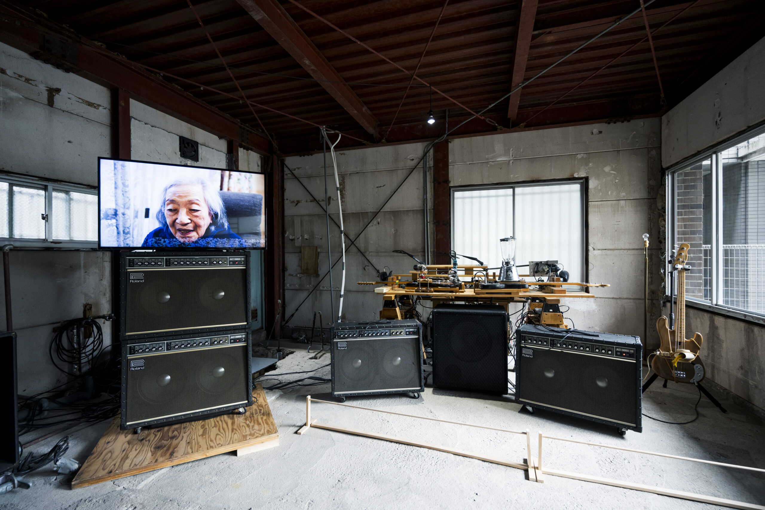 宇治野が「20世紀の日本人の自画像」と呼ぶオリジナルの《タンスロボ》は2010年に発表したインスタレーション《ザ・バラッド・オブ・エクステンデッド・バックヤード》の一部だが、近代を修復するプロジェクトの一環として、サウンド・スカルプチュア《リファービッシュド・タンスロボ》を地域で調達した材料を使用し再生、2025年に新たに再起動する。