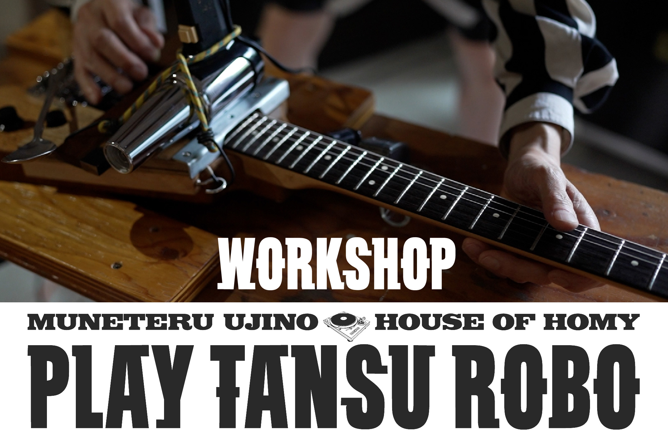 アーティスト・宇治野宗輝の作品《リファービッシュド・タンスロボ》をプレイ(演奏)するワークショップを開催します。作品の一部であるギターやベースを演奏するアイディアのある方、ぜひご参加ください!