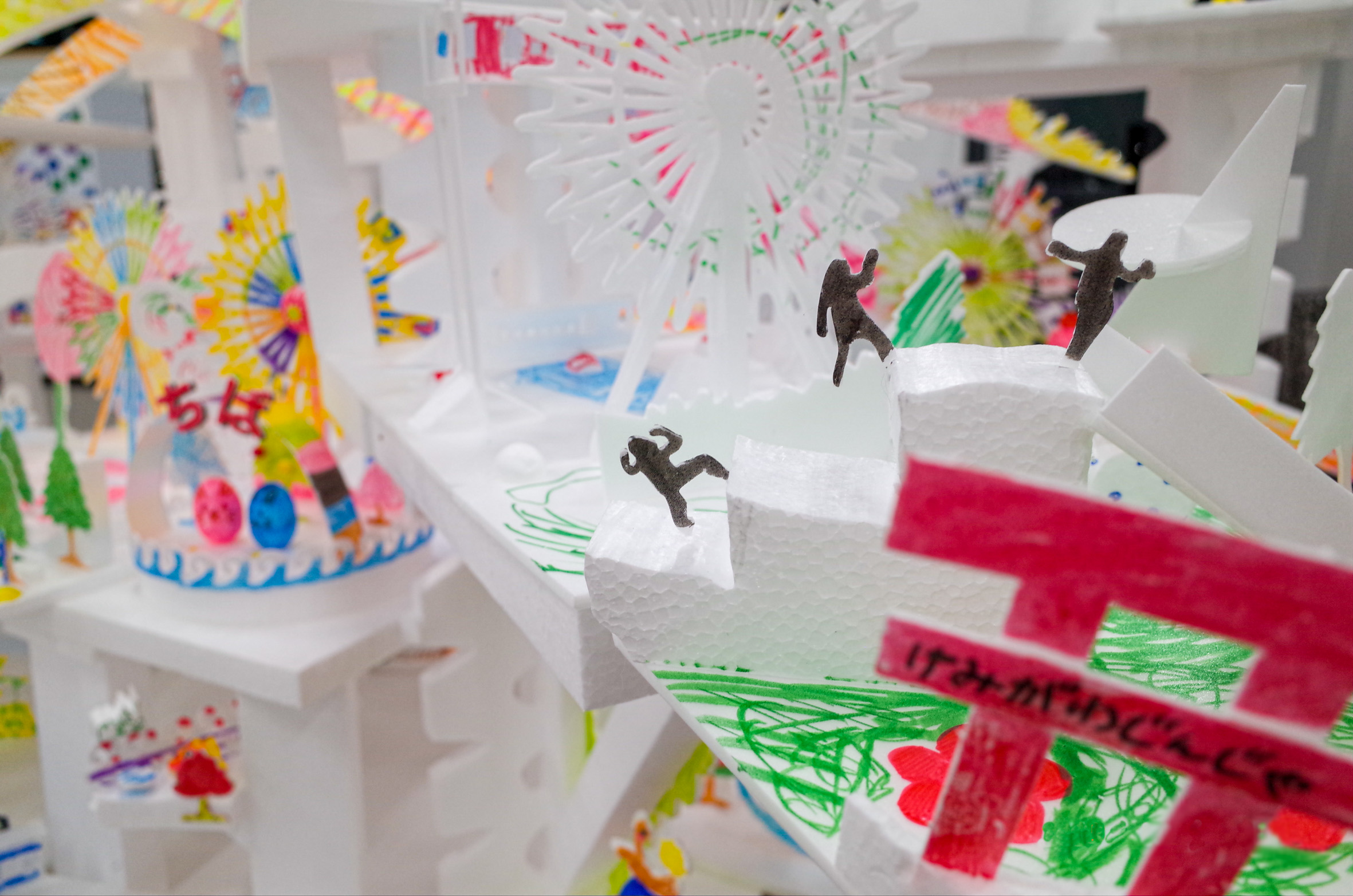 千葉市のランドマークである「千葉ポートタワー」を舞台にした今回の展示では、これまでのワークショップで作られた約200個の作品を一堂に集めて巨大な建築模型を制作し、公開します。千葉市に暮らす人々が見て、考えて、感じた「千葉市」のイメージの集合体とは、いったいどんな形になるのでしょうか?