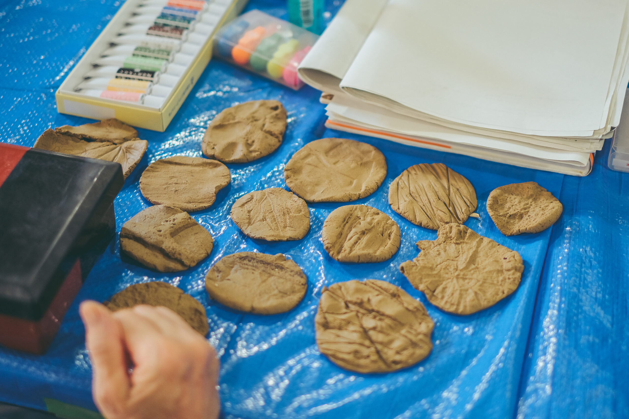 本展「千葉片片採集記(ちばぺんぺんさいしゅうき)」は、アーティスト・諏訪部佐代子によるアートプロジェクト「変わりゆくちばを形にする」の成果発表展です。千葉市内で写真に残された歴史を見ながら、まち歩きとかたちの採集を組み合わせたワークショップ「いまあるちばの形を伝えてみよう!」を開催しました。市街地や川沿い、公園などで見つけた誰かが遺した凹凸や傷、石畳の継ぎ目、干からびたちいさな蟹や落ちた木の実、土埃──それら人知れずいつかどこかで刻まれた痕跡を、参加者はひとつひとつ発見し、触れ、粘土で型取り、共有しました。