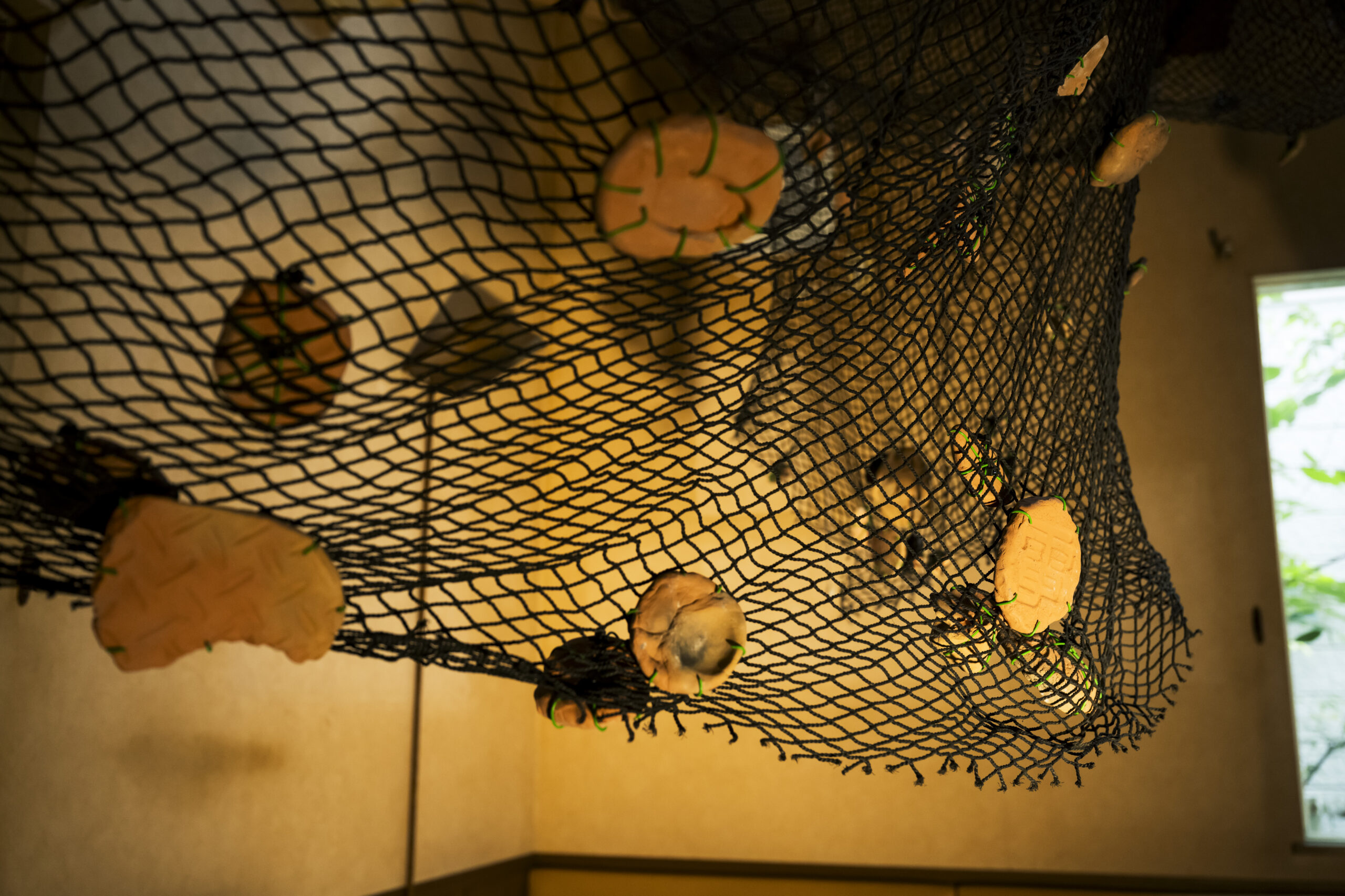 展示では大きな地引網の上に土や石の質感や重みを纏いながら作品が横たわり、その起伏や温度を通じて、一人一人の都市を見つめる視点、都市と自然の境界に触れる体験ができます。過去と現在、そして未来へと連なる時間の層を浮かび上がらせる本作は、変わり続ける都市の中で私たちが立っている「今」を照らします。千葉という土地に積み重なった記憶と変容を、どうぞ五感いっぱいに感じてください。