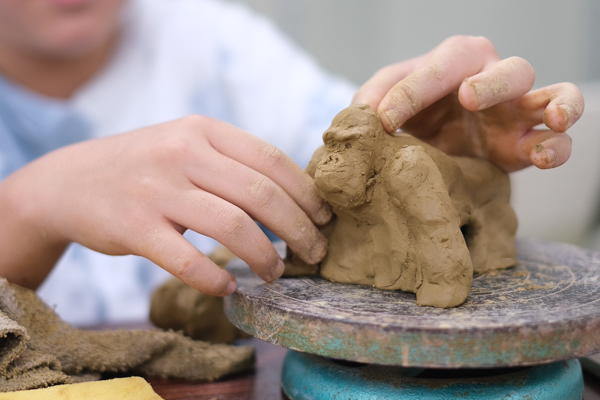 採取した粘土を使い、好きな動物をモチーフにやきものをつくる