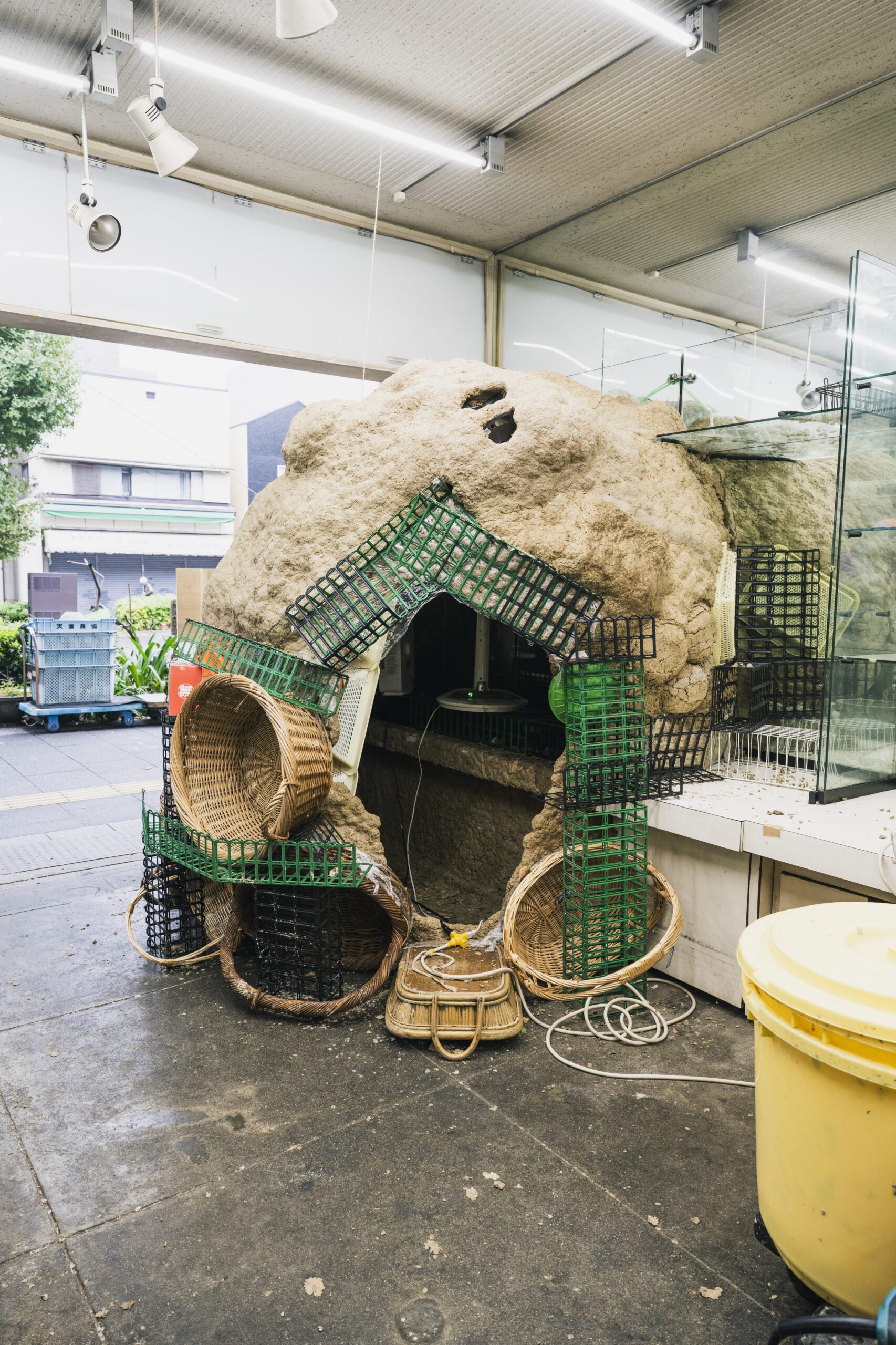閉店した八百屋「市原屋」を起点に、街の店々や家庭から段ボールを譲り受け、その痕跡や記憶をたどりながら、都市の巣をかたちづくるプロジェクト。