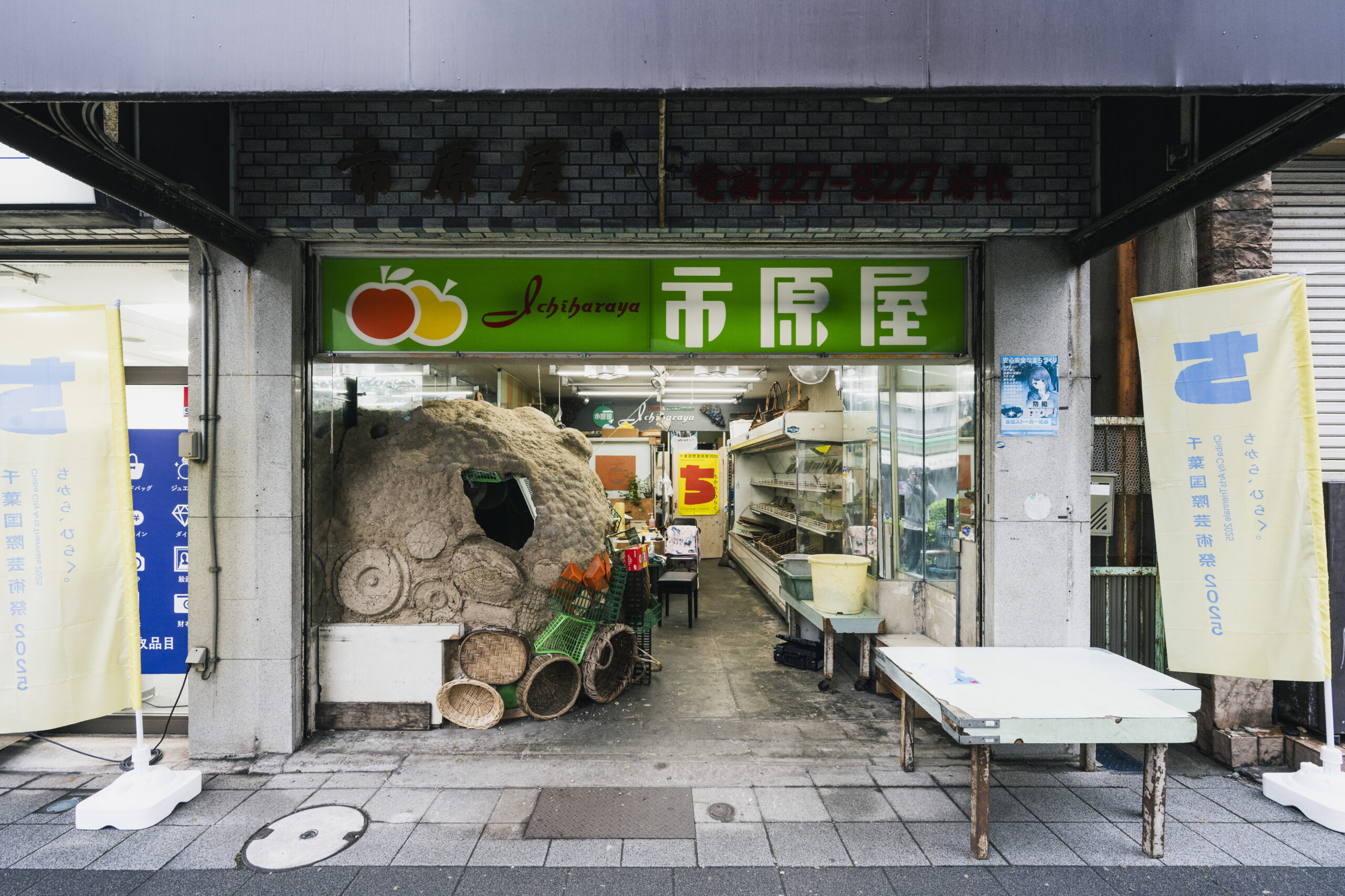 閉店した八百屋「市原屋」を起点に、街の店々や家庭から段ボールを譲り受け、その痕跡や記憶をたどりながら、都市の巣をかたちづくるプロジェクト。
