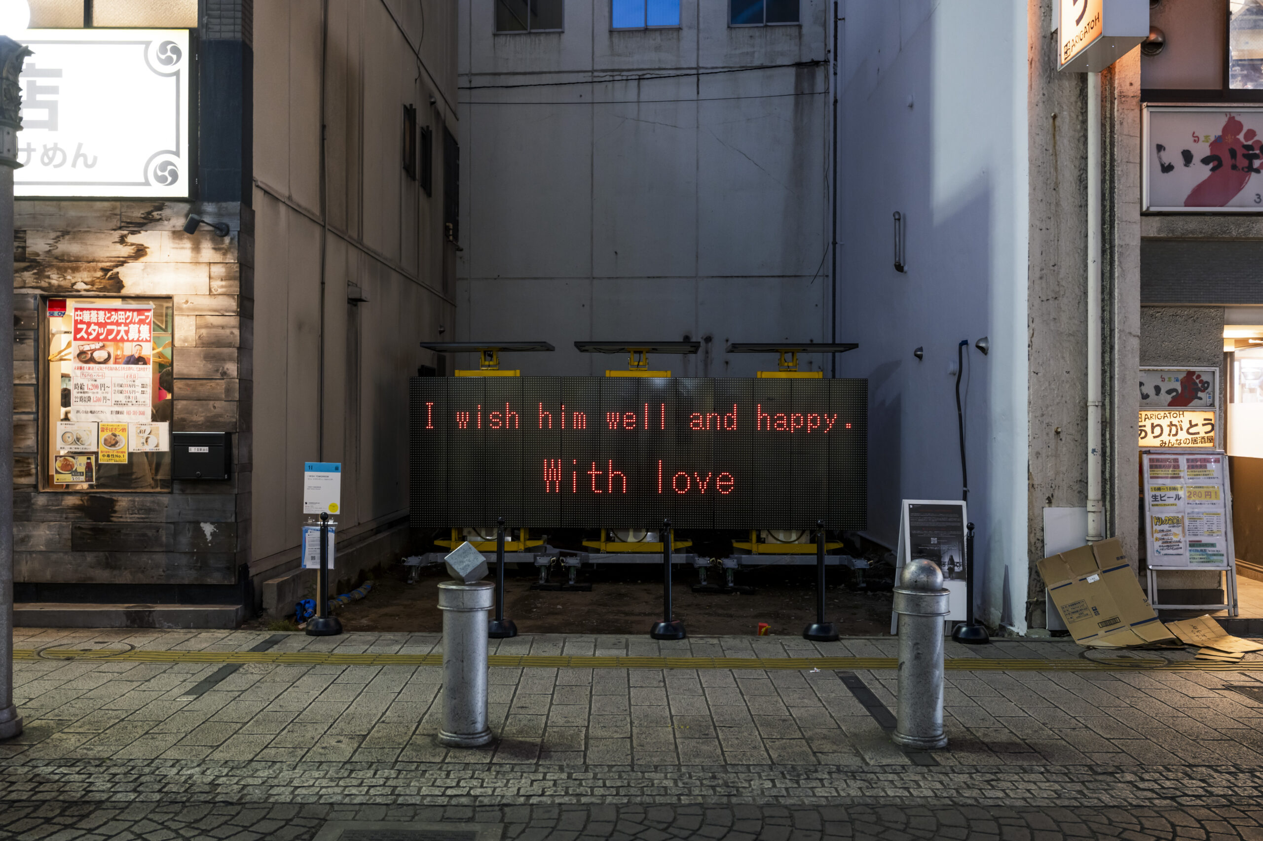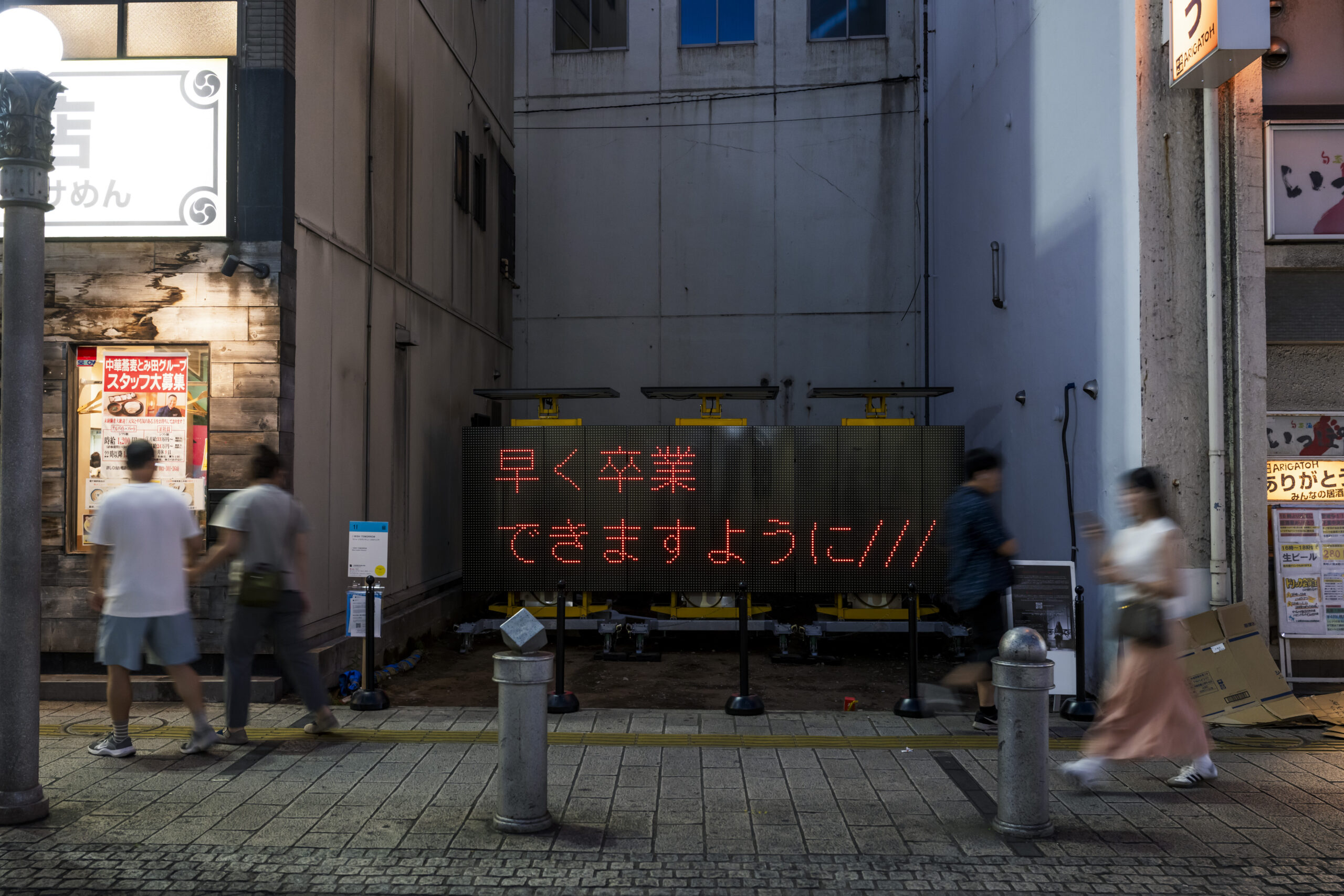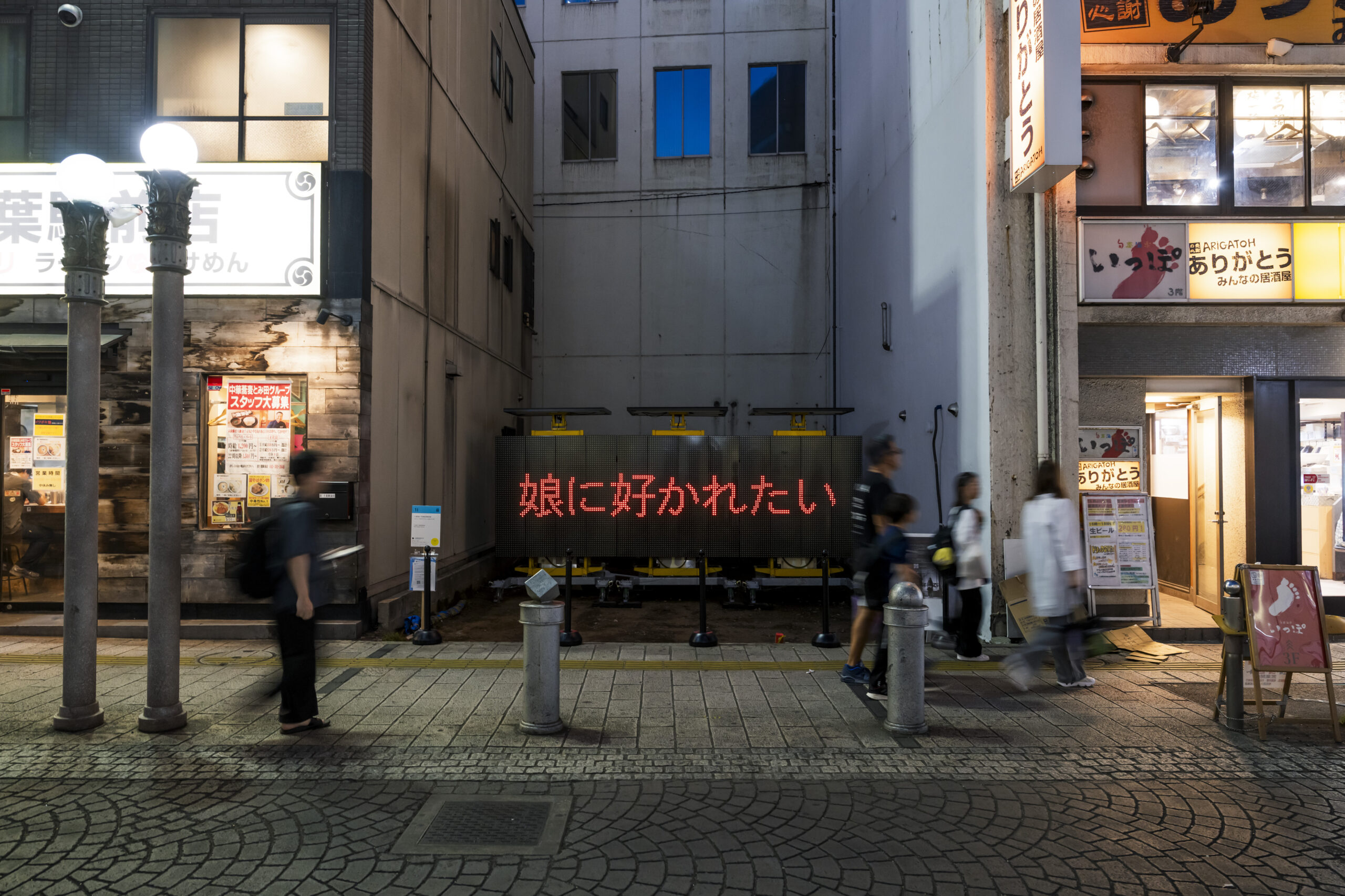 次に、千葉国際芸術祭2025の集中展示・発表期間中、千葉市内の公共空間にインスタレーションを設置し、集まった願いを光の文字として可視化する。来場者は専用サイトにアクセスすることで願いを投稿することもできる。
