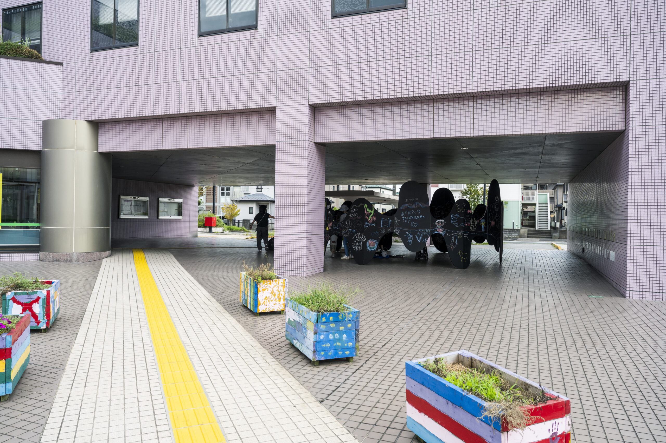 環状黒板は市民とアートとの距離を縮め、市民の参加によって初めて完成する作品である。